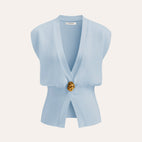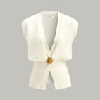 Vesta Annalena – V-krk s knoflíky pletená vesta spojuje klasickou eleganci s moderním pohodlím. Hluboký V výstřih a jemné detaily knoflíků podtrhují ženské rysy, zatímco příjemný pletený materiál zajišťuje komfort při nošení. Ať už přes košili, tričko nebo samostatně – tato vesta se snadno přizpůsobí všem stylům. Ideální pro přechodná období nebo jako stylový prvek vrstvení v každodenním životě. Univerzální kousek, který skvěle spojuje módu a pohodlí.