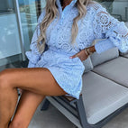 Dámská souprava z krajky – halenka s dlouhými rukávy a kraťasy s vysokým pasem. Elegantní a lehká souprava, která spojuje rafinovanost a pohodlí, ideální pro horké dny a speciální příležitosti.