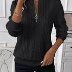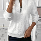 Svetr „Carolyn“ kombinuje nadčasový design s funkčností. Praktický zip zajišťuje snadné oblékání a svlékání a zároveň dodává svetru moderní vzhled. Vyroben z měkkého materiálu, nabízí vysoký komfort nošení a lze jej všestranně kombinovat s džíny, sukněmi nebo kalhotami – ideální pro každodenní nošení a volný čas.
