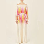 Dámská souprava dvou kusů – Hedvábný efekt – Top s odhalenými rameny – Vysoký pas – Široké nohavice: Tato elegantní dvoudílná souprava kombinuje pohodlí a styl. Top s odhalenými rameny a kalhoty s vysokým pasem a širokými nohavicemi jsou vyrobeny z luxusní látky s hedvábným efektem a poutavým potiskem.