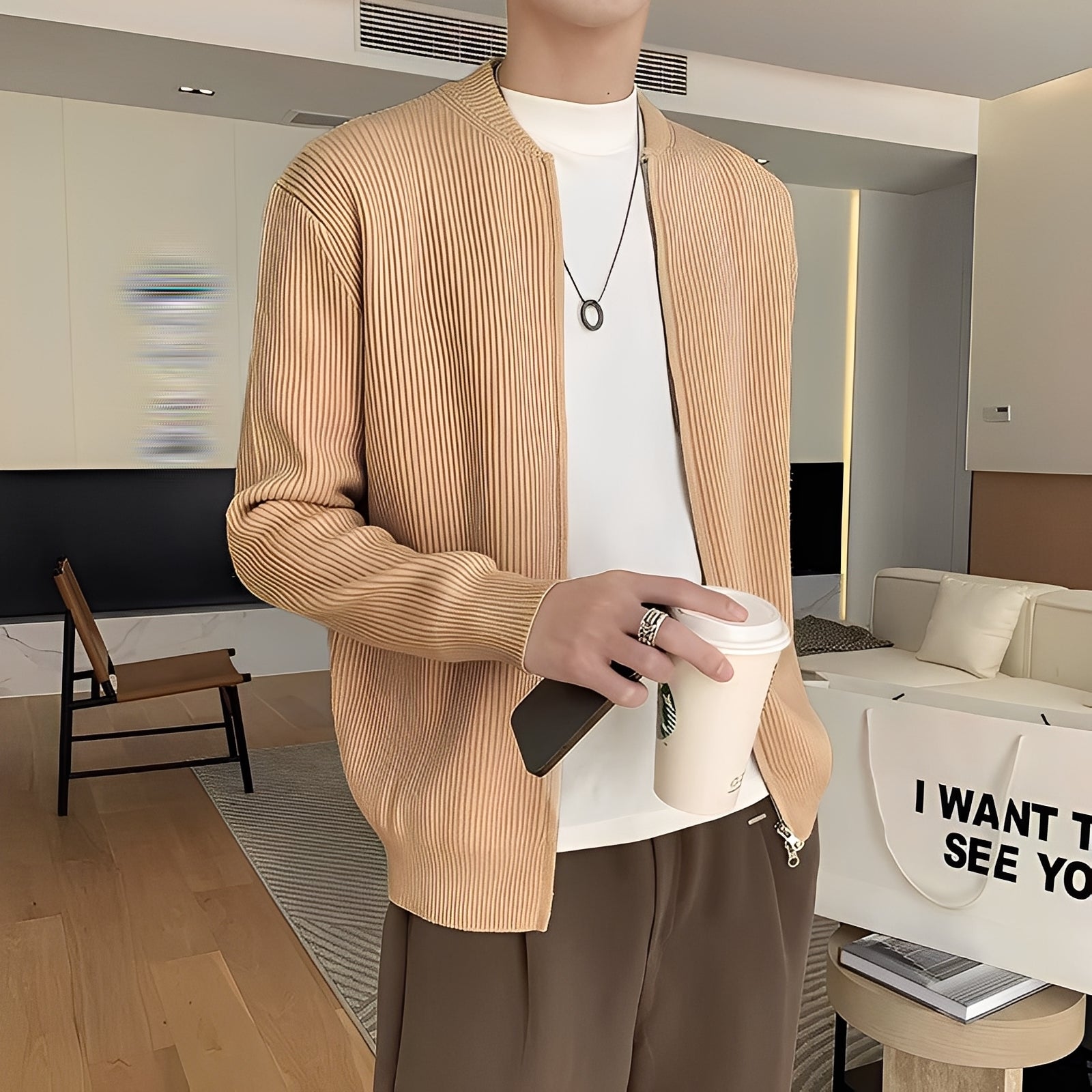 Damon - Retro pletený svetr s zipem pro muže