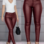 Dina – Dámské PU Stretch veganské kožené kalhoty, vysoký pas