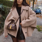 Elena – Kabát Oversize z Melírované Vlny Dvouradový