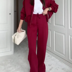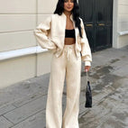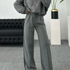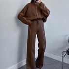 Dámská souprava - Oversize mikina se zipem - Široké kalhoty s vysokým pasem - Pohodlný střih: Perfektní kombinace pohodlí a stylu. Užijte si ležérní střih s oversize mikinou se zipem a širokými kalhotami s vysokým pasem.