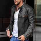 Hayden - Klasická kožená bunda s kapsami na zip pro muže