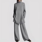 Tato lounge souprava nabízí dokonalou kombinaci pohodlí a stylového designu. Vysoký límec zajišťuje dodatečný komfort a teplo, zatímco elegantní střih vytváří lichotivou siluetu. Vyrobeno z měkkých materiálů, je ideální pro uvolněné dny doma nebo ležérní volnočasové outfity. Souprava, která bez námahy spojuje komfort a styl.