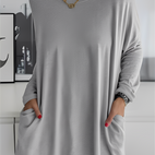 Krystle - Volné dlouhé rukávy top s kapsami pro ženy
