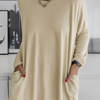 Top s dlouhými rukávy „Krystle“ vyniká svým volným střihem a měkkým, příjemným materiálem. Díky praktickým kapsám spojuje funkčnost a styl a je ideální pro každodenní nošení, volný čas nebo pohodové chvíle doma. Jeho jednoduchý, moderní design z něj činí univerzální kousek, který je nezbytným základem.