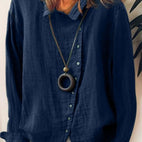 Naše dámská bavlněná a lněná ležérní dlouhá košile je navržena pro pohodlí a všestrannost a je nezbytností pro váš šatník. Vyrobena z lehké směsi, tato košile nabízí uvolněný střih, který krásně padá, ideální pro vrstvení nebo nošení samostatně. Kombinujte ji s legínami nebo džíny pro elegantní, ležérní vzhled, který je ideální pro jakýkoli neformální výlet.