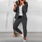 Souprava Madelyn zaujme svou nadčasovou elegancí a moderním střihem. Vyrobena z vysoce kvalitních materiálů, nabízí příjemný pocit při nošení a ženskou siluetu. Ať už v kanceláři, na oslavách nebo ve volném čase – tato souprava se dá všestranně kombinovat a snadno se přizpůsobí různým stylům. Souprava, která dokonale spojuje eleganci a pohodlí.