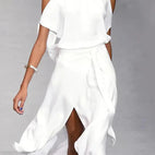 Představujeme Madonna – ztělesnění nenucené elegance. Naše asymetrické midi šaty s odhalenými rameny ztělesňují půvab svým splývavým materiálem, který se při každém kroku půvabně pohybuje. S halter výstřihem vyzařují rafinovanou jednoduchost a jsou tak nezbytným kouskem pro váš šatník.