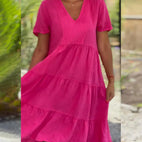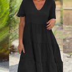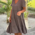 Přijměte nenucený půvab s šaty Manuela s výstřihem do V z bavlny a lnu