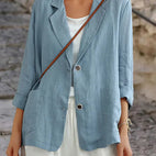 - Letní svěžest: Bílý lněný blejzr je symbolem lehkosti a svěžesti – ideální na letní dny.