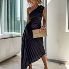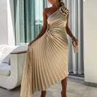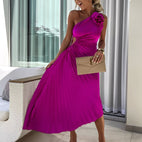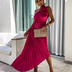 Rachael - Elegantní plisované šaty s květinovým ramenem pro ženy