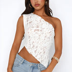 Dámský Top Jedno Rameno - Krajka s Květinovým Vzorem - Asymetrický Design - Elegantní Střih: Tento nádherný top s jedním ramenem kombinuje eleganci s moderním a asymetrickým designem. Skutečný poutač!