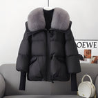 Victoria - elegantní větrovka péřová bunda s kožešinovým límcem pro ženy