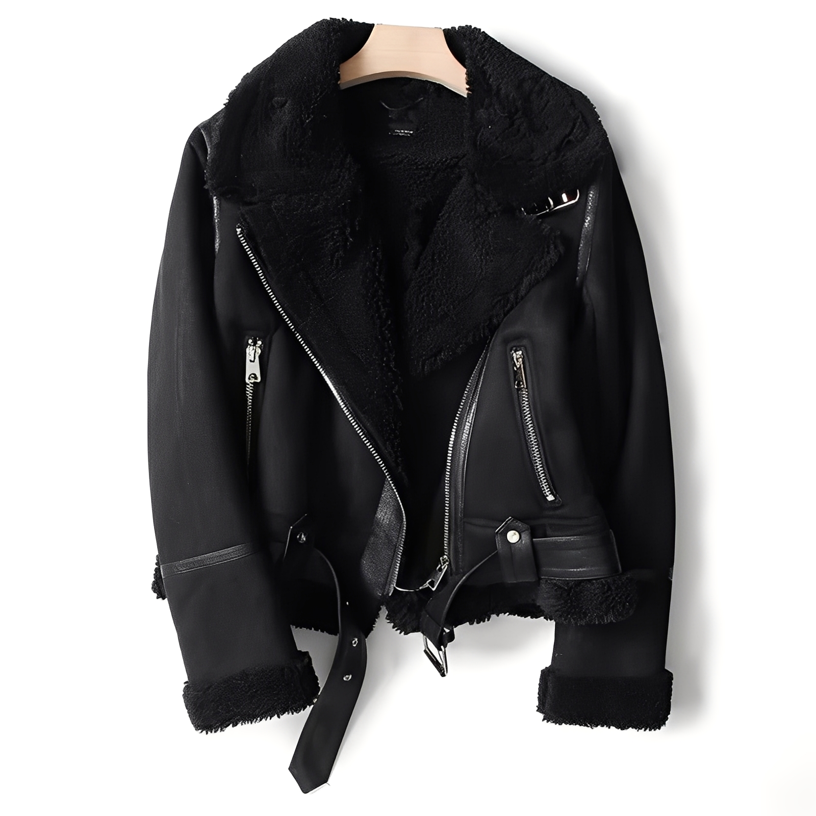 Yasmine - Teplá biker bunda z jehněčí kůže pro ženy
